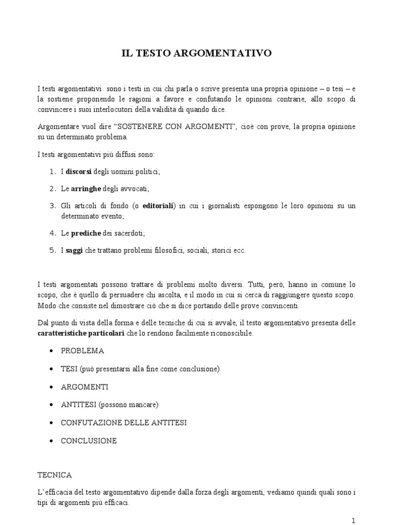 Come Scrivere Un Testo Argomentativo Docsity