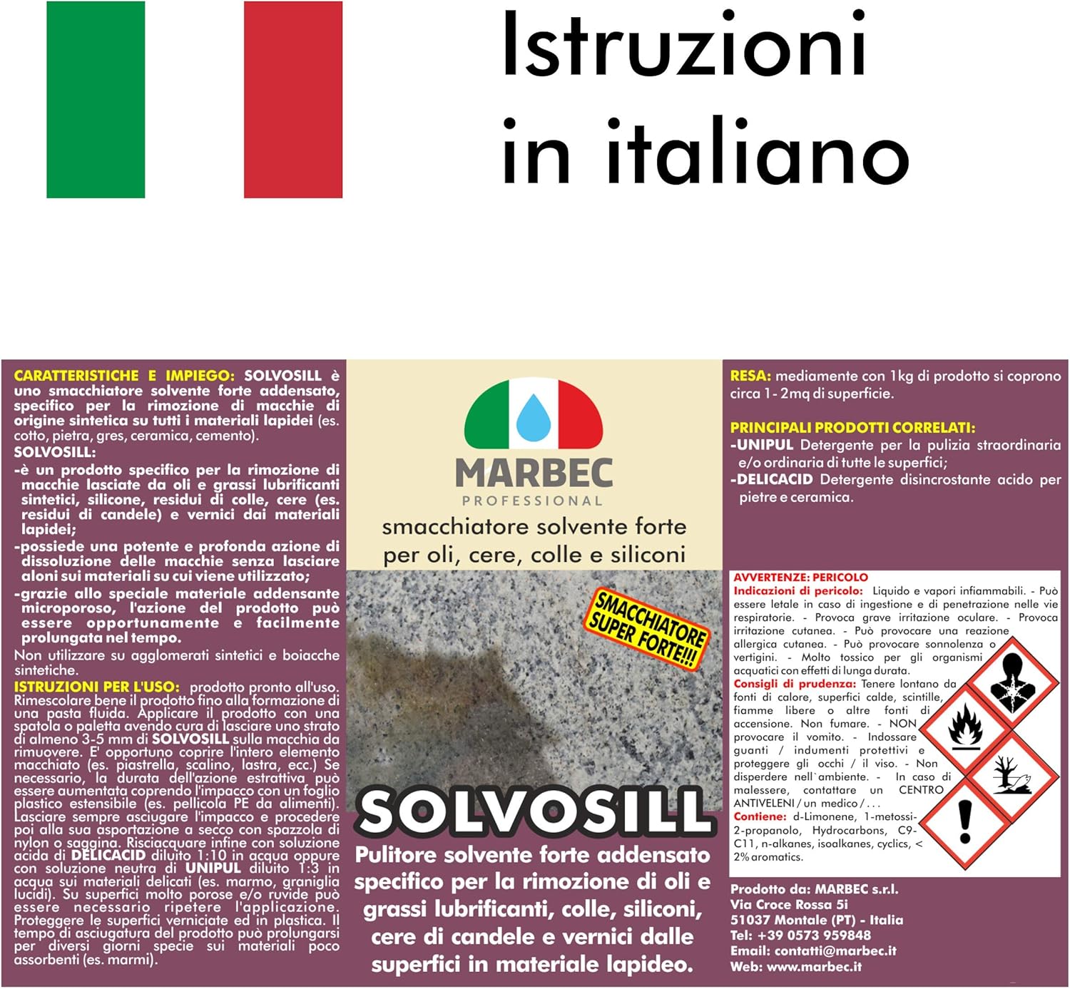Marbec Solvosil 1kg Smacchiatore Per La Rimozione Di Macchie