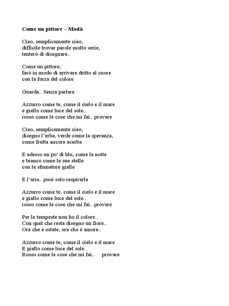 Come Un Pittore Lyrics By Moda Ciao Semplicemente Ciao